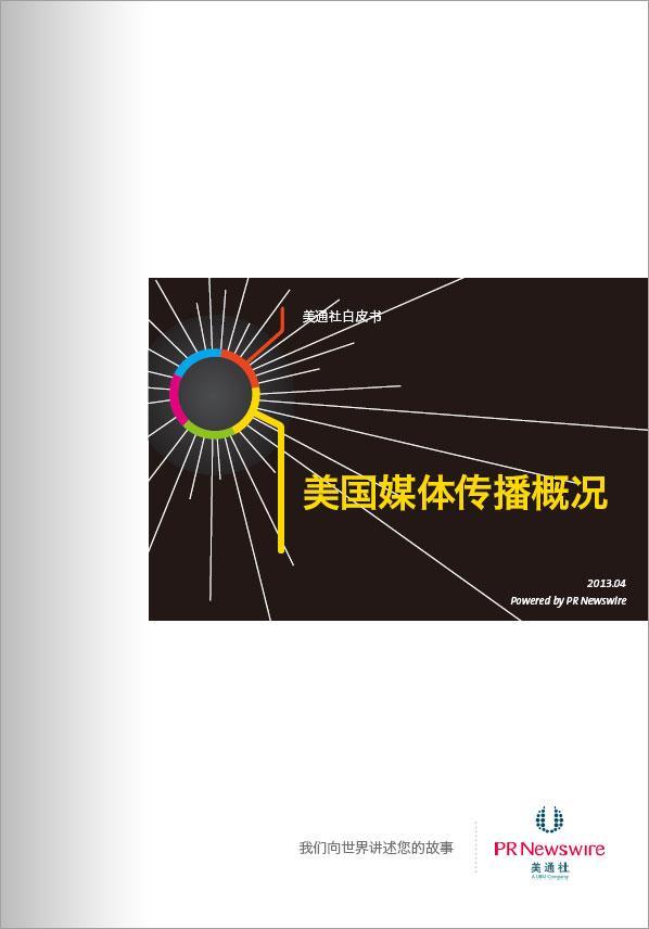 北京2013年4月26日電 /美通社/ -- 美通社今日推出《美國媒體傳播概況》白皮書,旨在幫助在美國做公關傳播的中國企業和機構了解美國媒體環境。白皮書從傳統、在線和新媒體等不同媒體形態入手,對美國媒體傳播情況做了基本描述,包含綜述、研究數據、趨勢分析、重點媒體排名等內容。白皮書還針對如何在美國進行企業新聞傳播提供了建議。點擊此處下載白皮書。